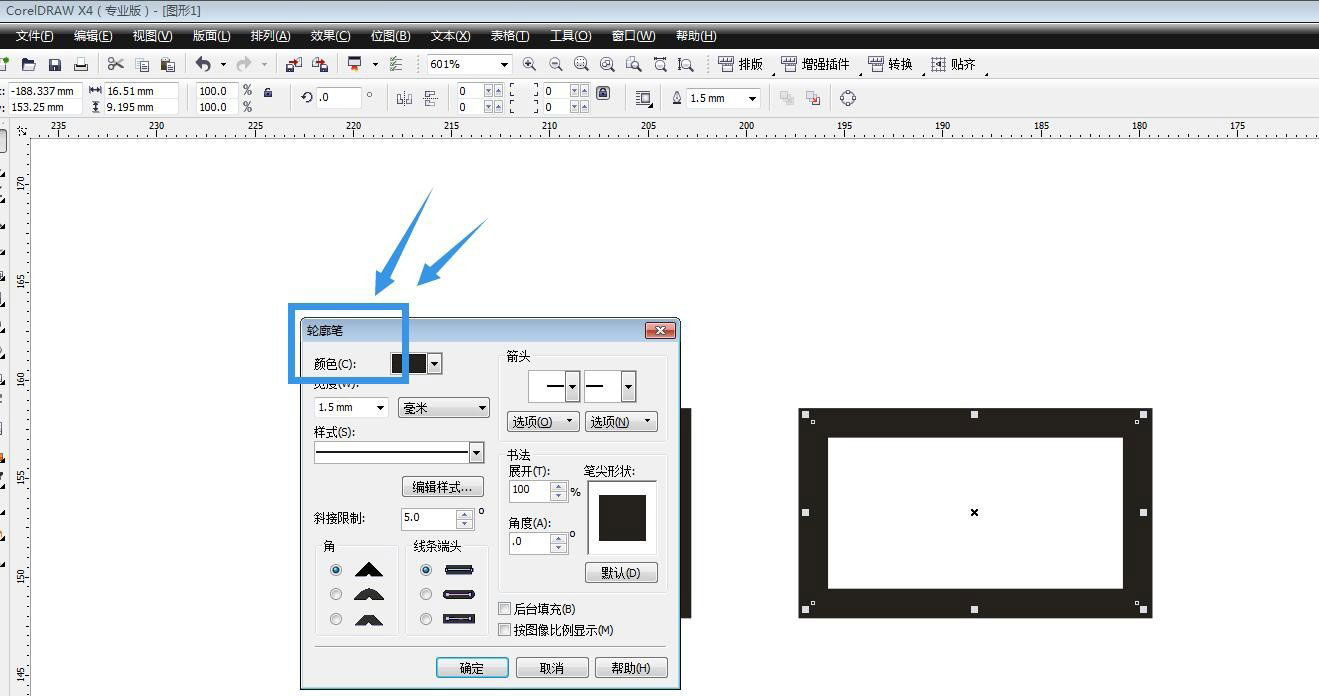 点击工具栏的轮廓笔工具,打开面板设置。
