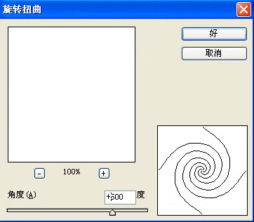 4.按CTRL+J复制这个图层,选择"滤镜"->"扭曲"->"旋转扭曲",设置角度为+500,如下图所示: