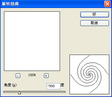5.再按一次CTRL+J键复制图层,选择"滤镜"->"扭曲"->"旋转扭曲",设置角度为-500,如下图所示: