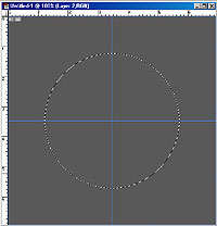 1、新建一个500X500图象,背景色设为黑色,拖动水平与垂直辅助线到文件的中间,(按Ctrl+R使文件窗口显标尺)选择Elliptical Marquee 工具,按SHIFT+ALT键的同理拖动鼠标,在文件中间画一个圆形选区。新建一层, 命名为chrome base。