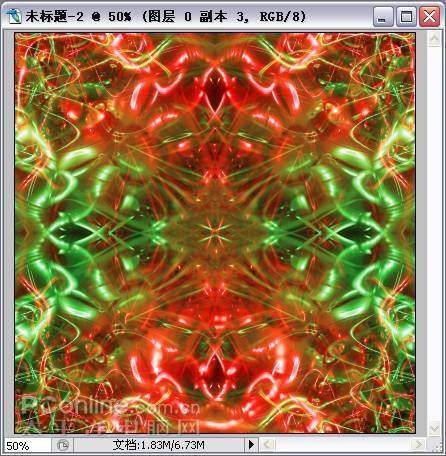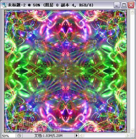13. 再把最上面的复制一层,点编辑—变换—垂直反转。合并两个图层,点图象—调整—色相/饱和度,进行调色。选你喜欢的色彩。如果要色彩再丰富点,就重复这一步,调出不同的颜色就可以了。(图14)