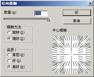 8.选择菜单命令“滤镜|模糊|径向模糊”,如图所示: