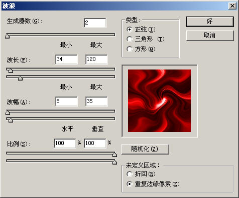 13.选择菜单命令“滤镜|扭曲|波浪”,如图所示:
