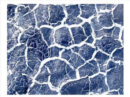 2、在Photoshop中新建一个600×450像素,背景为黑色的文档,并命名为“爆炸的星球”。打开素材图片,反相该图片(快捷键Ctrl+I),使裂缝颜色变白。选择椭圆选框工具(快捷键Shift+M),在素材图片上圈选出一个圆形选区(按住Shift键可以拖出正圆选区)。复制该选区内容到“爆炸的星球”文档中,将复制的素材图片图层命名为“素材图片”。