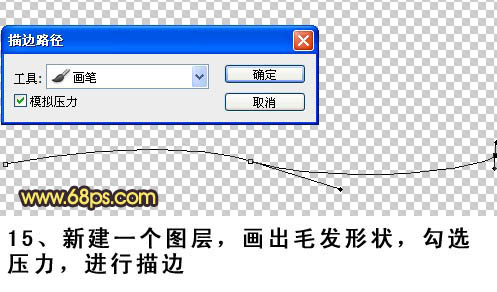 15、新建一个图层,画出毛发形状,勾选模拟压力进行描边。