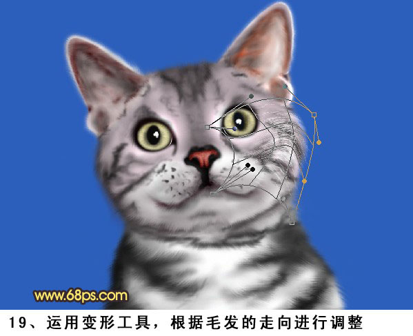 19、运用变形工具,根据毛发的走向进行调整。
