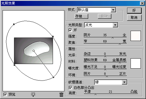 5.到菜单--滤镜--渲染--光照效果,做如(图2)设置。