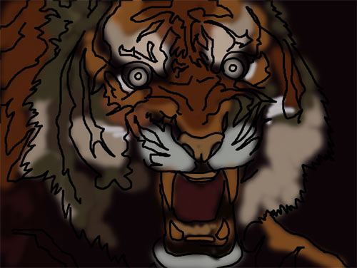 2、新建一个图层,在透明的区域根据照片把老虎的轮廓勾出来: