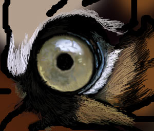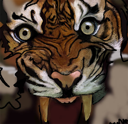 4、就是细致的制作了,用1像素的毛笔按照老虎毛的走向绘制,这需要耐心和一定的美术基础。眼睛部分通过雾化柔和制作,和毛发的制作不太一样。关键是柔和光滑。