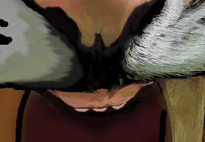 6、用绘制眼睛的方法绘制牙齿,毛笔不断重叠,然后用手指工具按照轮廓方向揉: