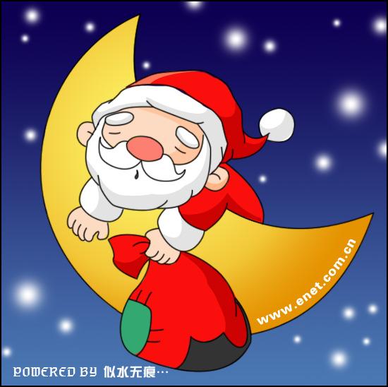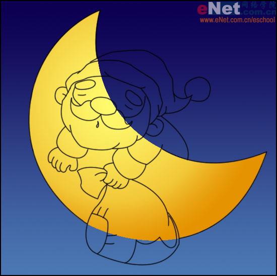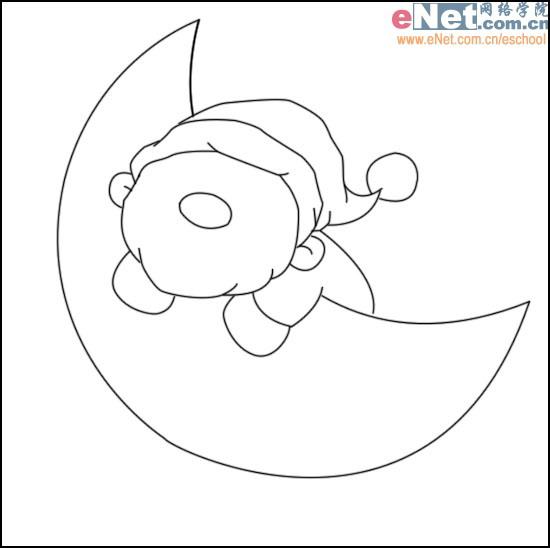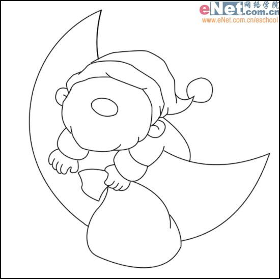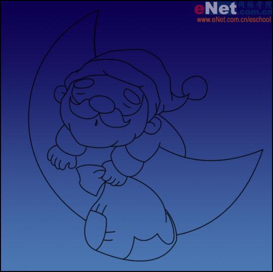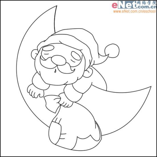 2、根据前面的轮廓线用钢笔勾出月亮与圣诞老人的主要外形,擦除月亮被遮挡的部分。