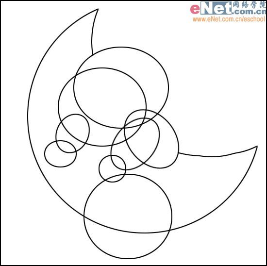 1、是圣诞老人趴在月亮上,先用几个简单的圆形把大体形态勾出来。