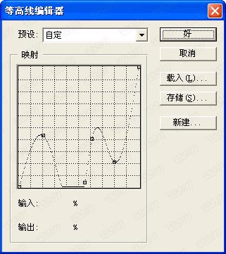 14.下来来做爪箱的底托,先在背景层的上面新建一个图层,用钢笔工具钩如(图20)所示的底托轮廓,并填充为米灰色,双击此图层,钩选斜面浮雕效果,并取消浮雕效果中的全局光设置,将阴影角度设置为165度,高度为28,并将光泽等高线作如(图21)般调整,将等高线作如(图22)般调整,光泽就选用默认的等高线。完成后如(图23)。