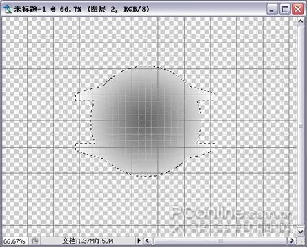 5. 设前景色为浅灰色,背景色白色,点径向渐变,由选区中心向外拉。(图6)
