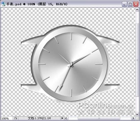26. 参照第一个圆盘的方法做个小圆,也可以复制第一个圆盘,缩小就可以了。最后合并秒针的图层,(图31)