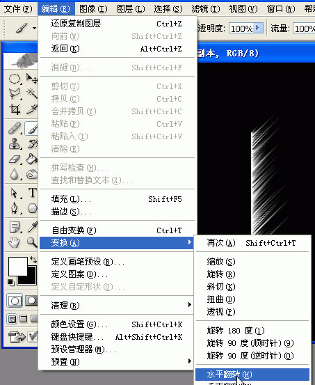 5、点击“编辑/变换/旋转” 设旋转值为:-45度,按回车确定。