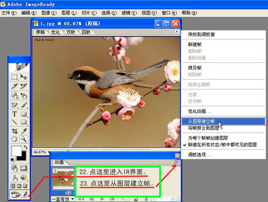 23、点下图的箭头位置从图层建立帧,不同的帧对应不同的图片。