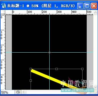 3、新建图层1,工具箱中的矩形选框工具,画一长方形,并填充RGB黄。取消选区。并自由变换。如下图,按回车确定变形。