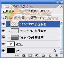4.选中图层调板中最上面的3个图层,即由图层样式得来的图层,按快捷键Ctrl+E合并图层。
