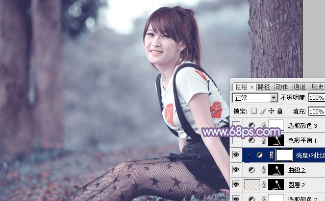 PS利用通道替换打造淡调蓝紫色树林美女照片调色教程