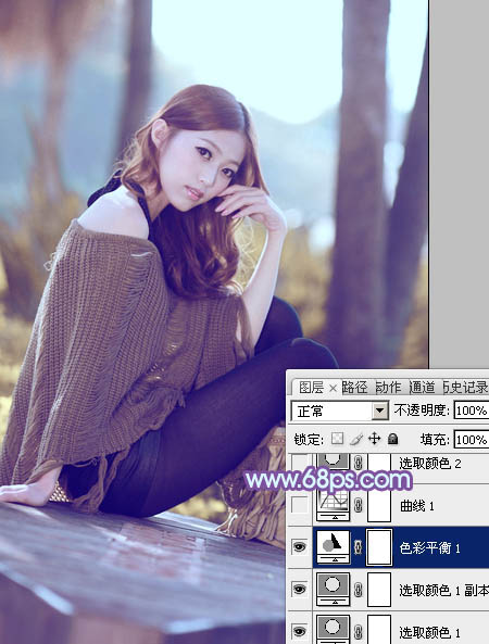 Photoshop打造柔和冷色效果的树林中美女照片调色教程