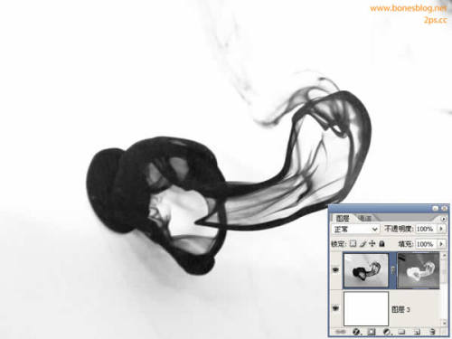 12、蒙版的还原,结果当然是墨没有了,没有关系,在蒙版上执行Ctrl+I命令,将图像反相。