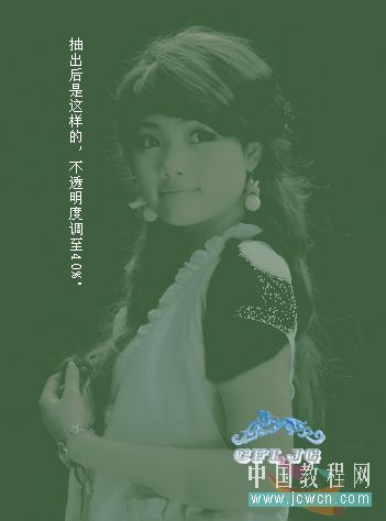 5、抽出后同样要清除掉边缘的杂色,这次抽出目的是为得到头发的颜色,同样把该层的不透明度调至40%,图层的混合模式设置为滤色。
