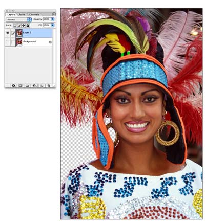 7 按照以上办法,扣除其余部分的背景,这时再看看羽毛边缘,是不是扣的很干净呢