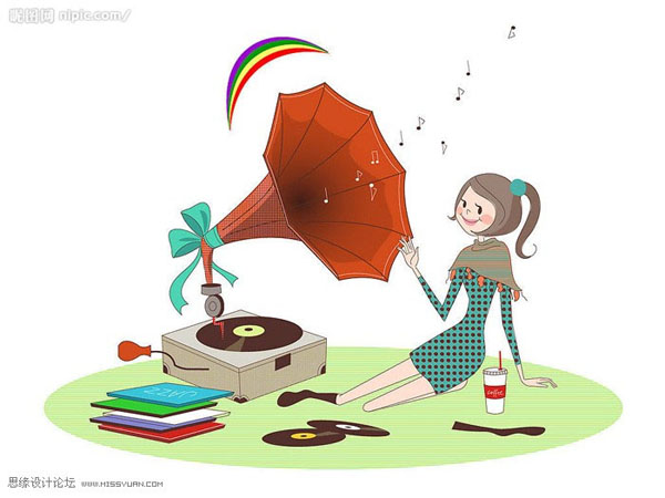 本教程介绍较为复杂的GIF动画的制作方法。效果图片需要动的部分有音符、光碟、人物的手。这些都是同步的。制作动画之前需要把这这些动画场景设置出来,然后再同步设置动画。