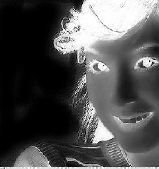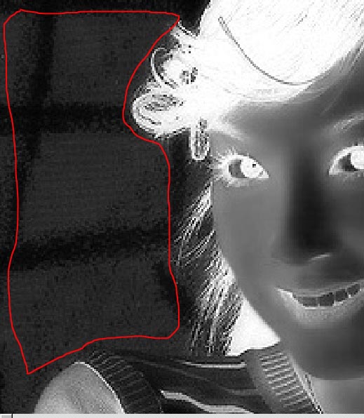 3、将图放大观察,背景部分有明显的灰色块。如过用色阶来加深绿副本通道,若为了使背景够黑加深过多,会损失发丝。所以在进行色阶调整前先用画笔工具往背景上涂抹黑色。