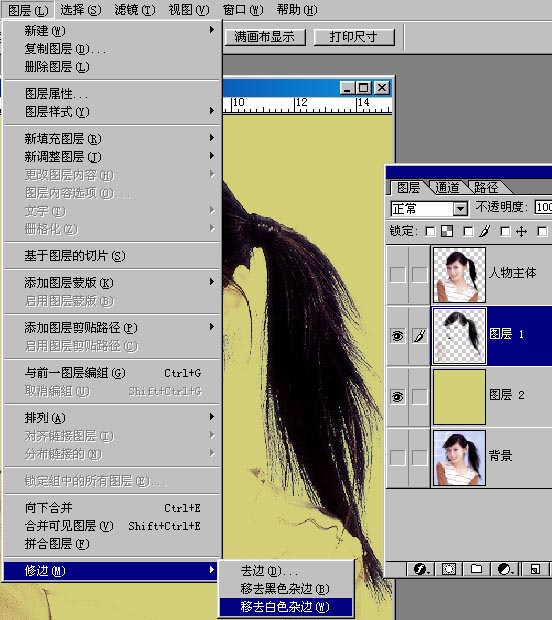 6、将图层1移去白色杂边。将“人物主体层”为可见,让前面眼睛出现。显示效果如图所示:第四抠到此完毕!