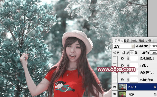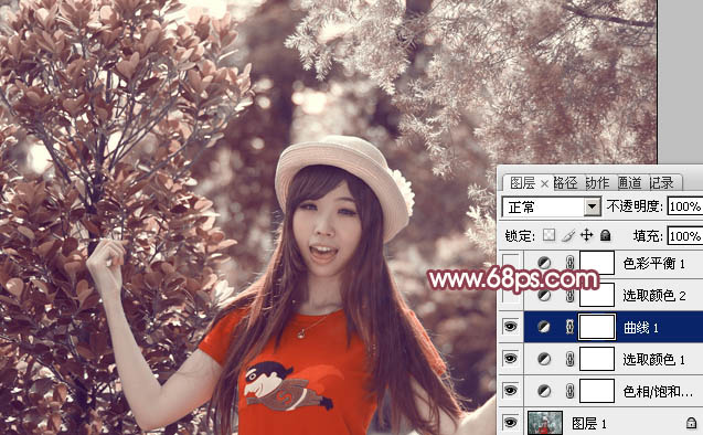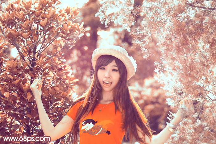 Photoshop调出鲜丽橙褐色的树林人物图片调色教程