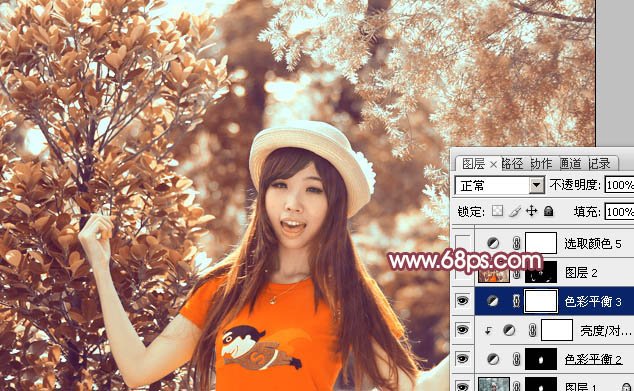 Photoshop调出鲜丽橙褐色的树林人物图片调色教程