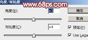 15、创建亮度/对比度调整图层,适当增加亮度及对比度,参数设置如图40,确定后把不透明度改为:50%,效果如图41。