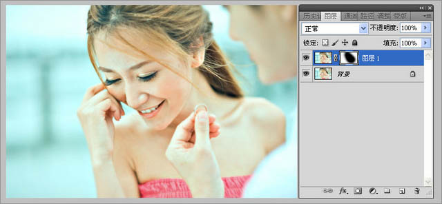 Photoshop使用Lab模式调出清新蜜糖色的情侣照片