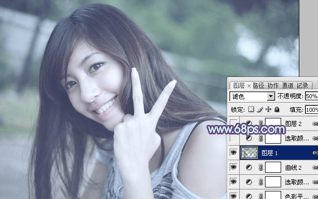 Photoshop调出中性青蓝色效果的外景美女照片教程