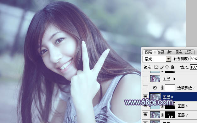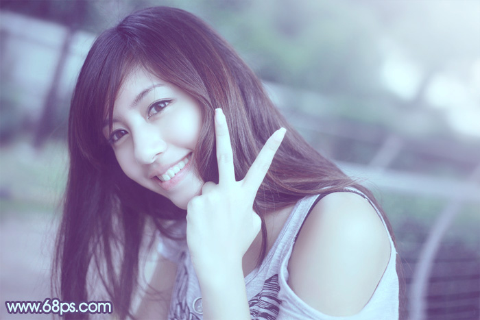 Photoshop调出中性青蓝色效果的外景美女照片教程