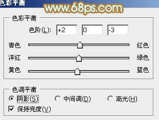 4、创建色彩平衡调整图层,对阴影,高光进行调整,参数设置如图9,10,效果如图11。这一步加强图片暗部及高光部分的颜色。