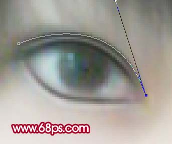5、双眼皮的制作。有很多教程都说过。这里我简单介绍一下。选择画笔工具,笔刷大小设为2像素,前景颜色设置为黑色,用钢笔工具勾出图9所示路径,右键选择路径描边,选择画笔,可以不勾选模拟压力。确定后执行:滤镜 > 模糊 > 高斯模糊,数值为0.5,同样方法勾其它路径如图10,效果如图11。效果有点恐怖,主要是眼珠部分还没有做好,后面再处理。