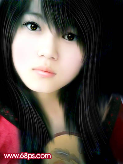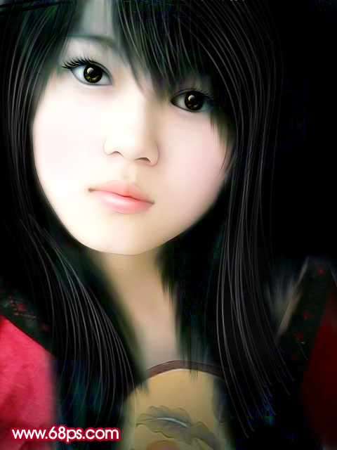 14、新建一个图层,这一步是画头发,方法就不介绍了。这方面的教程有很多。