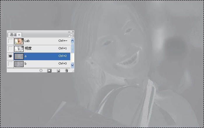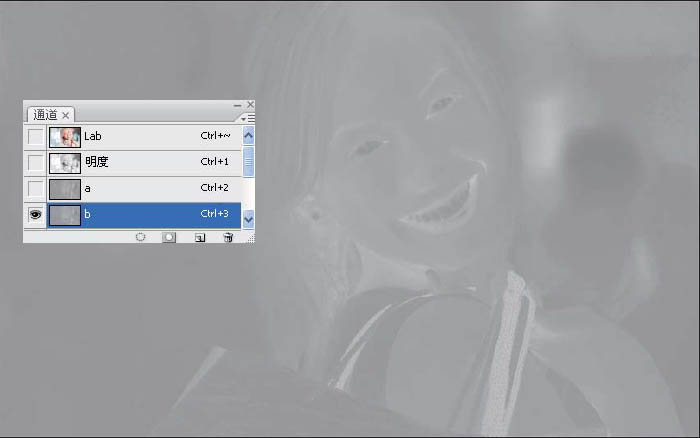 8、单击b 通道,按Ctrl+V 键,粘贴a 通道。