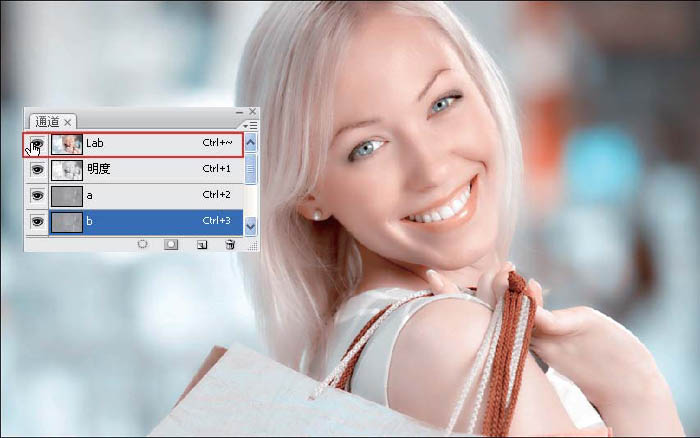 9、单击Lab 通道缩览图,即可看到效果,糖水色调的效果已经基本出来了。