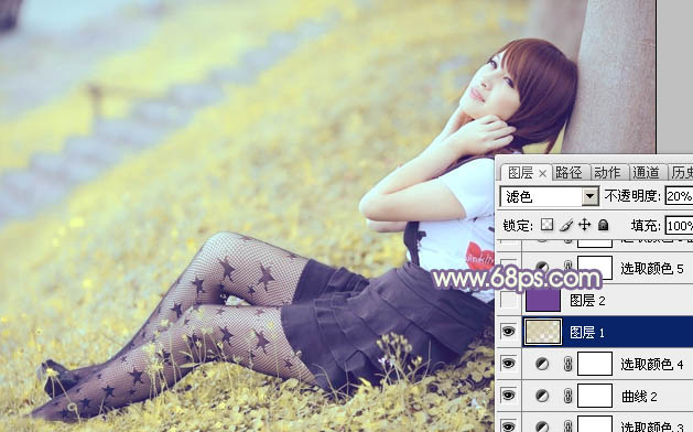 Photoshop调出淡调蓝黄色的外景美女照片调色教程