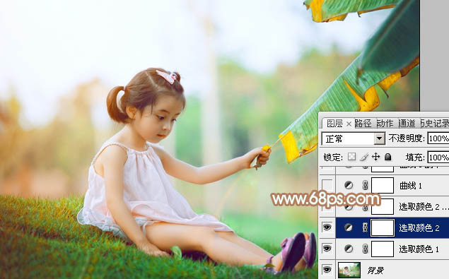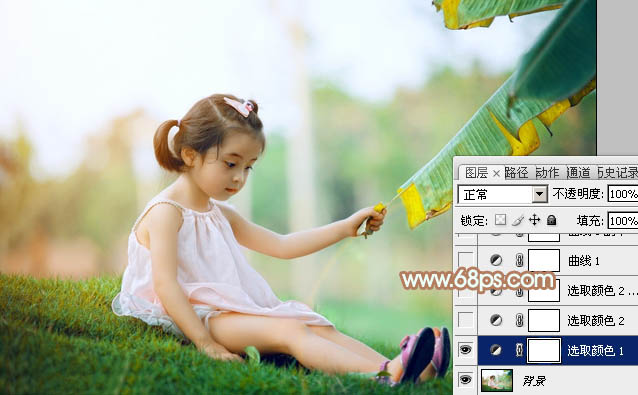 Photoshop制作小清新黄绿色的女孩照片调色教程