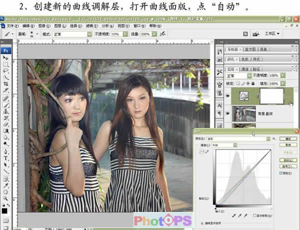 2、创建曲线调整图层,打开面板后点右边的自动按钮,然后确认,效果如下图。