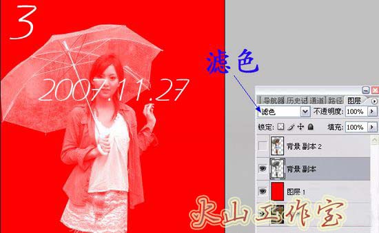 3、把图层混合模式改为“滤色”,效果如下图。