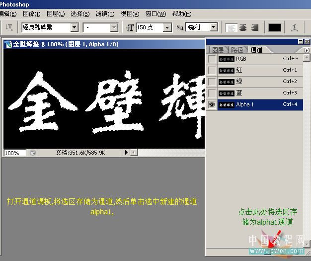 8、打开通道调板,将选区存储为通道,然后单击选中新建的通道alpha1。