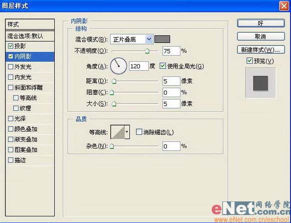 “内阴影”图层样式,设置参数如图22: