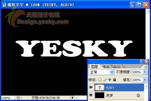 3.使用“文本工具”输入文本“YESKY”,并将颜色设置为白色,字体设置为“Cooper Std”(或者你喜欢的丰满一点的字体),外观如图2所示。