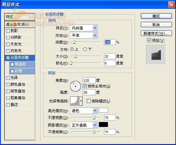 6.在“图层样式”对话框中按如图5所示设置“斜面和浮雕”样式的各选项。